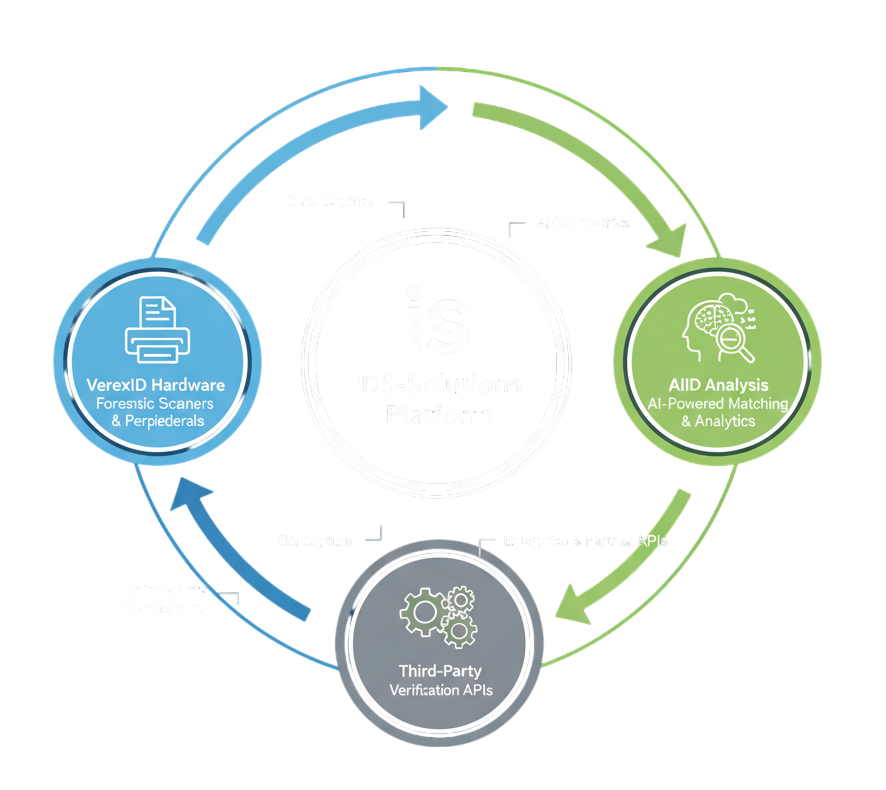 Together, VerexID, IDS-Solutions, and AIID form the most comprehensive forensic authentication ecosystem in the market. From border control to financial onboarding, the system ensures speed, security, and trust at every stage of identity verification.